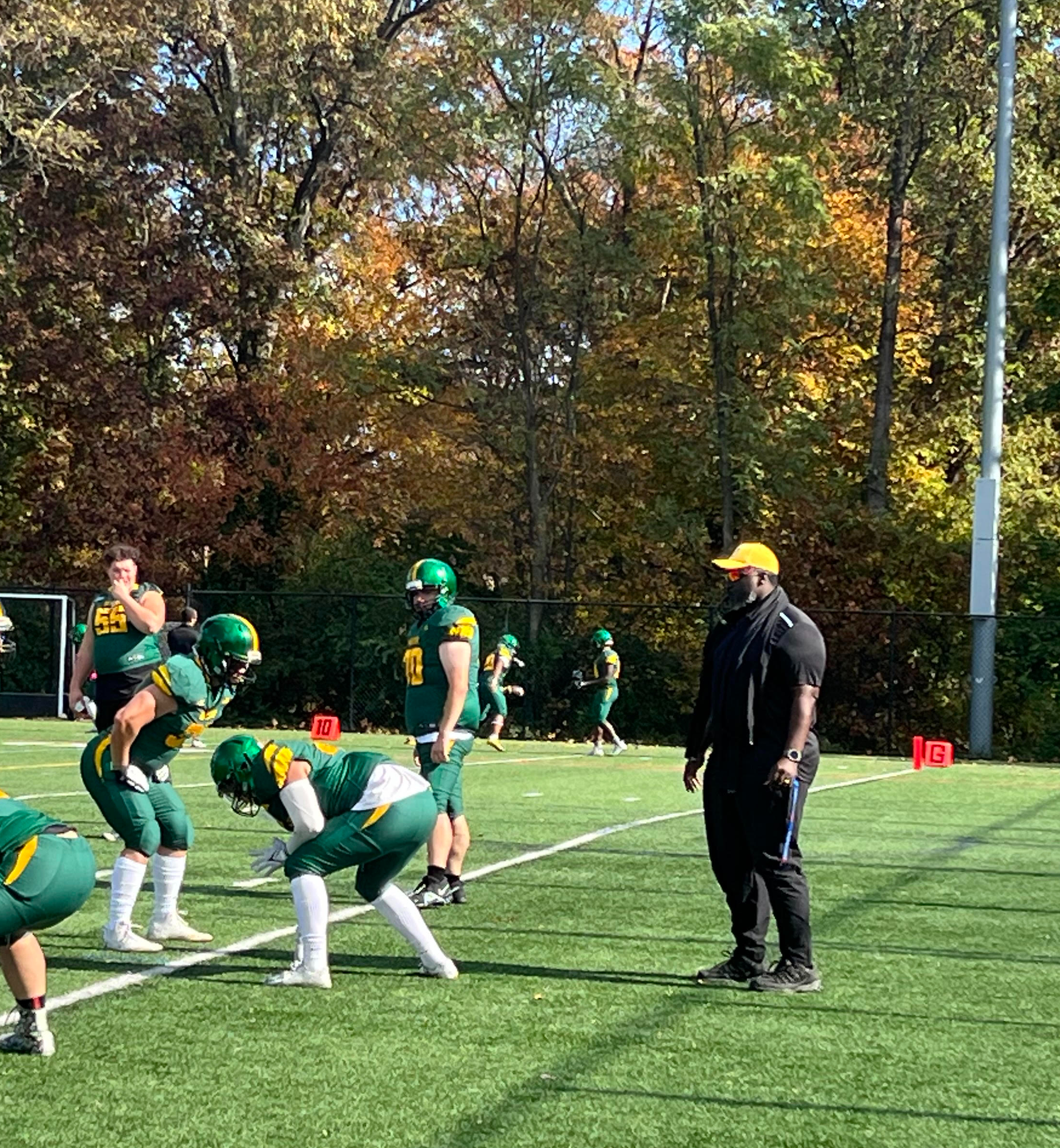 Noon. Kickoff is scheduled for 60 minutes from now and the George Mason football team marches onto the field, to begin their stretching and warm-up routine. Their opponent has yet to arrive, and they have already phoned ahead to say that they are running late. As the players split up into their position groups, offensive and defensive line coach Enoch Boateng, who is one of the coaches that followed Raffle to George Mason, leads his players to the endzone and runs them through some drills. “Coach Raffle got me into coaching,” exclaims Boateng, “he typically surrounds himself with good people and we all share the same vision for this team.”