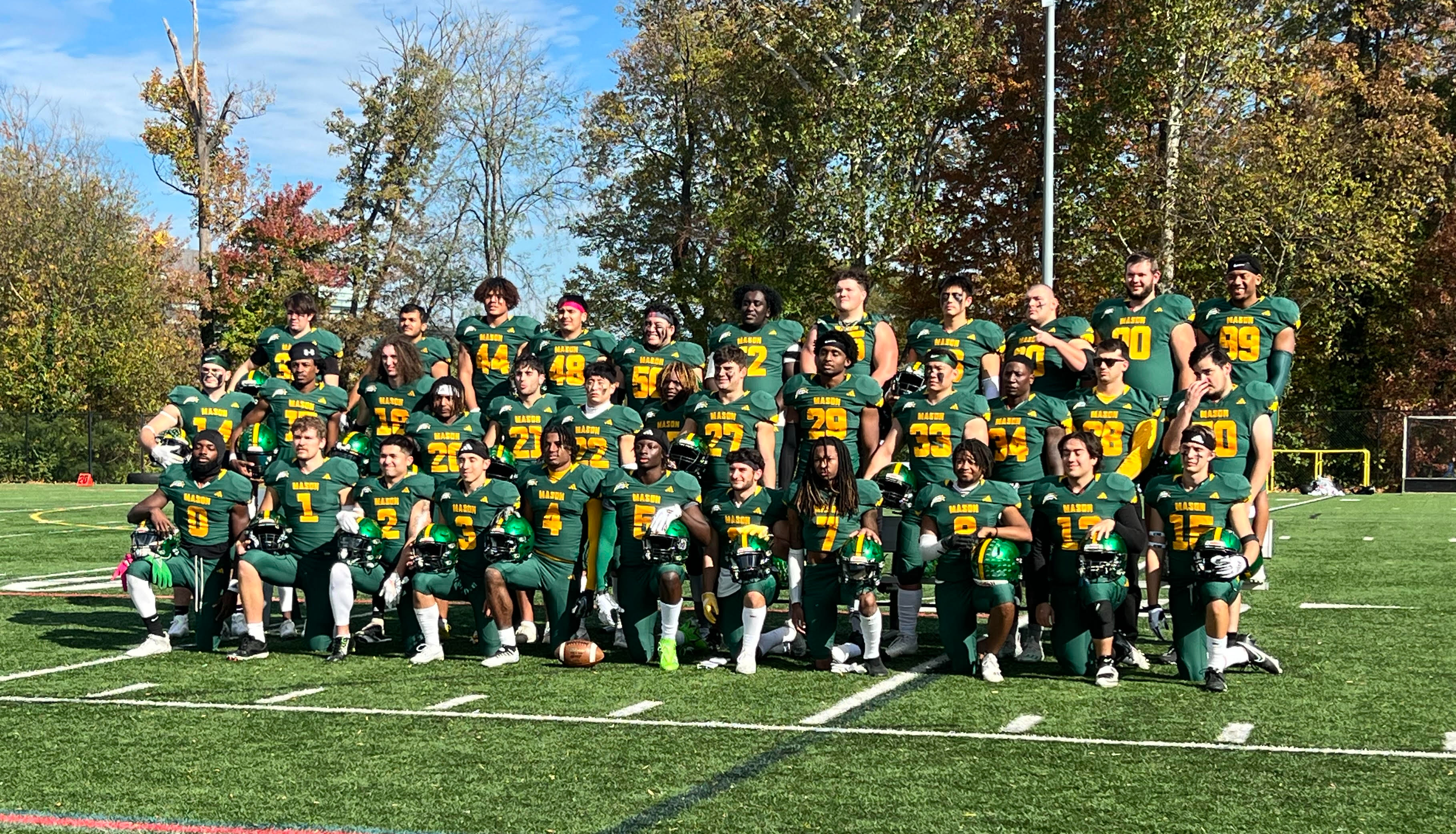 This particular group of players has seen a lot of success in their time playing football at George Mason. Last season they went all the way to the National Championship semi-final before they lost to Ohio State. This season they are 7-1 with their only loss coming to Sacred Heart University in Connecticut. This is a team full of players who receive none of the amenities that a varsity NCAA football team would get. They get no private dining room. No private weight room or clubhouse. They are forced to make football work around their class schedules instead of getting first dibs on class selection the way other athletes do. They work hard to ensure that they can be as present during the week as possible so that when it comes to game time on Saturday, they are prepared to dominate their opponent.
